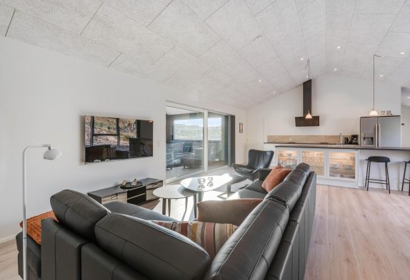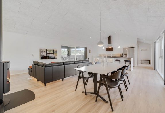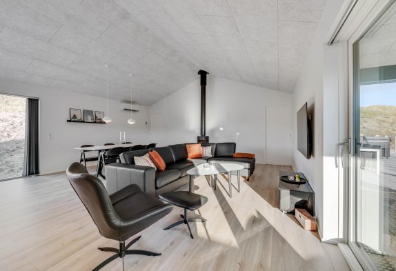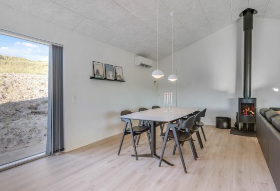 Sommerhuset er opført i 2021 og fremstår særdeles lyst og indbydende. Her venter jer en gennemført, moderne og hyggelig indretning, som danner rammerne for en fantastisk ferie på Vestkysten. Blandt andet er køkkenet indrettet med et amerikanerkøleskab. De store vinduer i feriehuset skaber et rigtig godt lysindfald og giver en fantastisk udsigt til den omkringliggende natur.