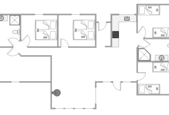 Sommerhusets 8 sovepladser er fordelt på 4 gode soveværelser, hvoraf de 2 er indrettet med dobbeltsenge. På de sidste 2 soveværelser finder i 2 enkeltsenge i hver.