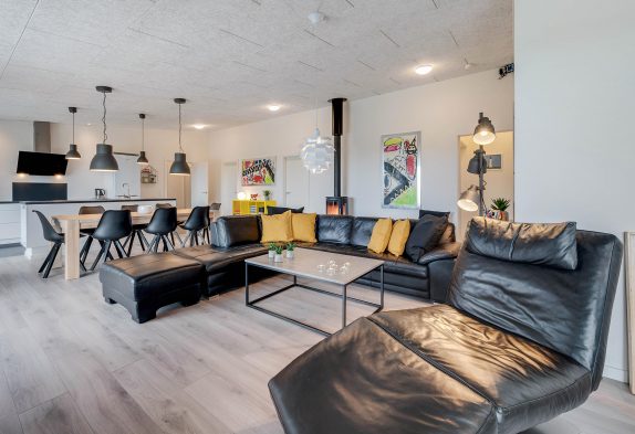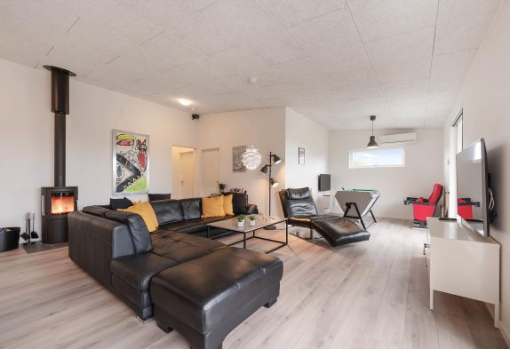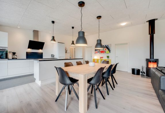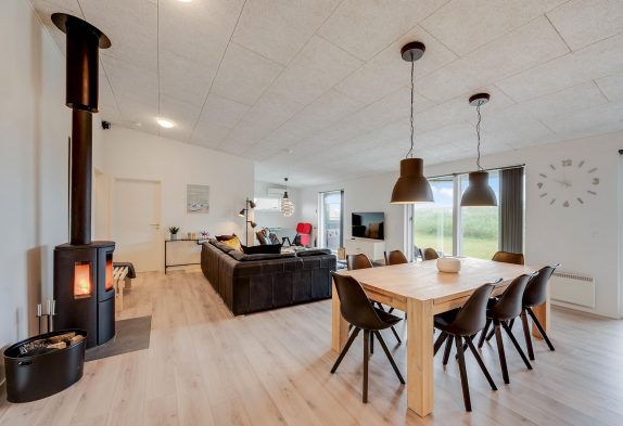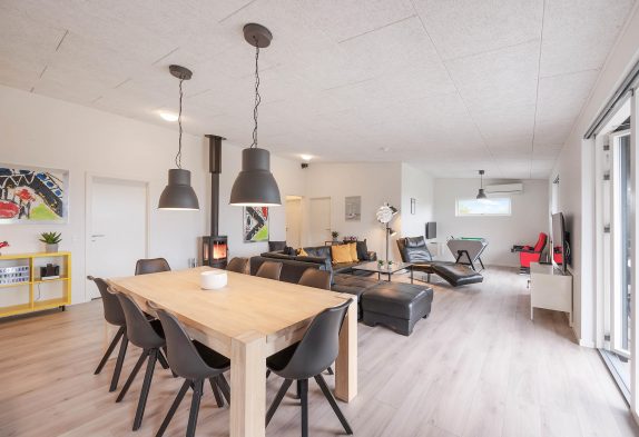 Hjertet i sommerhuset er alrummet, der forener køkken, spiseafdeling og stue. Alrummet byder på mange muligheder for hele familien. I køkkenet kan familiens kok give sig i kast med madlavningen, mens resten af feriebesætningen slapper af i sofaen, streamer film via Chromecasten i tv’et i eller tager et spil bordfodbold. Brændeovnen i rummet sætter prikken over i’et for stemningen.