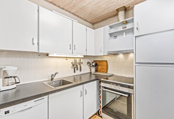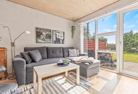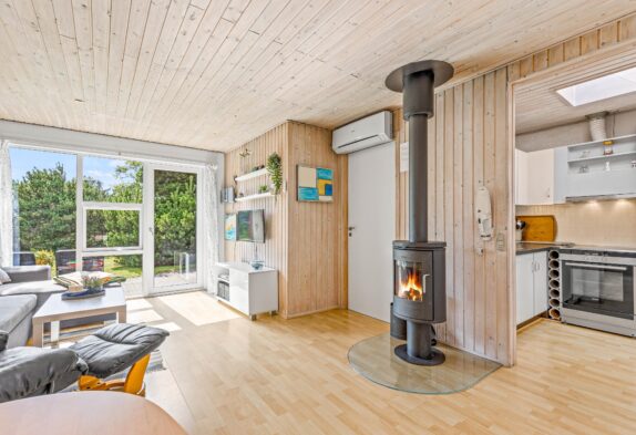 I sommerhuset på Fyrgården 1 er rammerne sat for en hyggelig ferie. Feriehuset har en personlig indretning, hvor der er garanti for mange gode feriestunder. I opholdsstuen er brændeovnen med til at fuldende feriestemningen med sine knitrende flammer, og på kølige aftener sørger den for god varme.