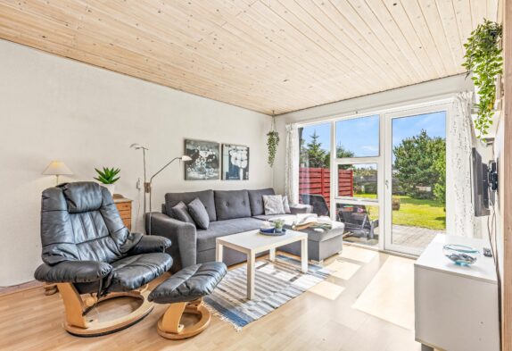På de feriedage, hvor vejret er i top, kan I rykke ud på terrassen. Sommerhuset har en afskærmet terrasse, hvor I har både liggestole og havemøbler til rådighed, som I kan finde jer godt til rette i. Som en perfekt afslutning på en dejlig feriedag kan I finde grillen frem og nyde en lækker grillmiddag på terrassen.