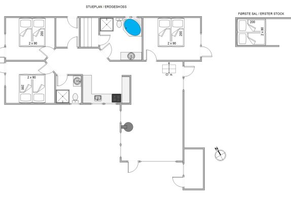 Et af sommerhusets højdepunkter er wellnessafdelingen, som I finder på ét af de i alt 2 badeværelser. Her er der både sauna og spabad, som indbyder til afslapning og velvære efter en oplevelsesrig dag. Der er desuden gulvvarme på begge badeværelser.
