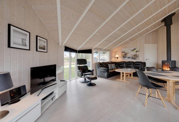 I det lyse og indbydende opholdsrum er der plads til hele familien, som kan samles til en hyggelig film- eller spilleaften. Vil I have ekstra god stemning, kan I tænde op i brændeovnen, som giver en varm og hyggelig følelse på ferien.