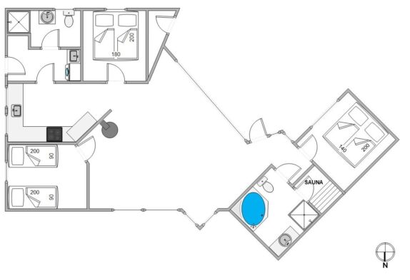 Desuden er der hele 2 badeværelser, så der ikke opstår kø om morgenen – begge er med gulvvarme. Som et ekstra plus er der både sauna og spa på det ene af badeværelserne, så I rigtig kan få slappet af.