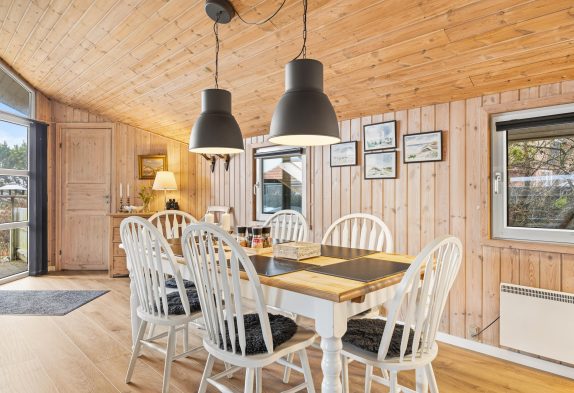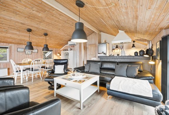 Den klassiske indretning og de skønne faciliteter som brændeovn, sauna og boblebad giver gode betingelser for maximal afslapning. Køkkenet er i åben forbindelse med opholds- og spisestuen, så I kan være sammen med hinanden, mens nogle tilbereder de lækre feriemåltider og andre slapper af omkring spise- eller sofabordet.