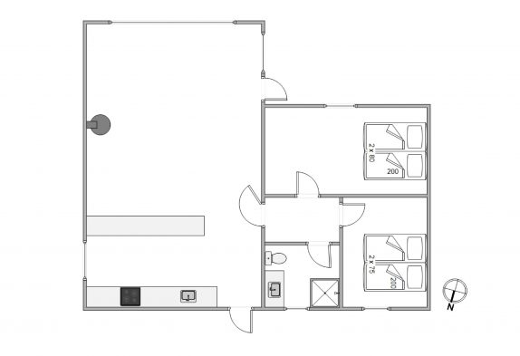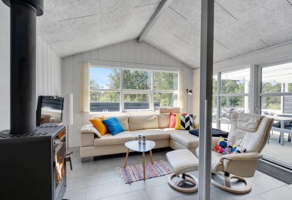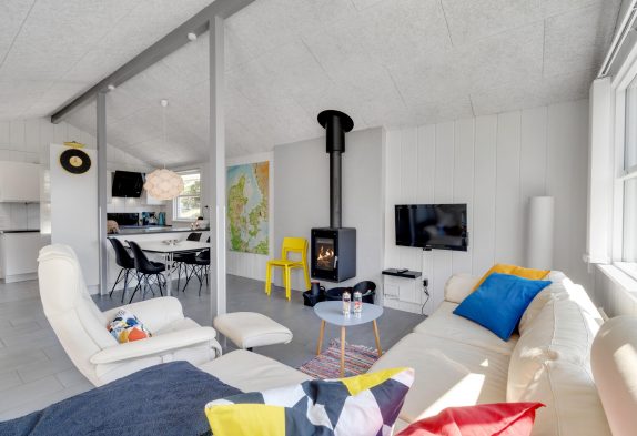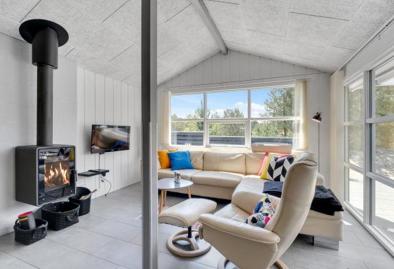 Derudover har sommerhuset et stort alrum, hvor køkken, stue og spiseafdeling er samlet i ét stort rum, hvor der er lagt op til mange dejlige feriestunder. Om I laver mad i køkkenet, spiller brætspil omkring bordet eller ser film i tv’et, bidrager brændeovnen med ekstra hyggelig stemning og god varme.