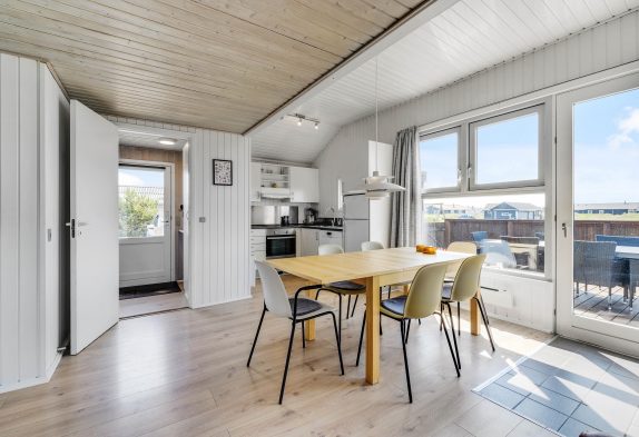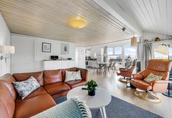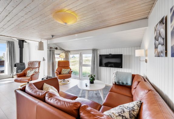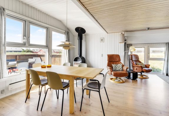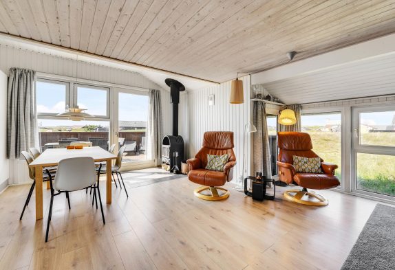 De store vinduespartier skaber et rigtig godt lysindfald, og indretningen er moderne. Dermed fremstår sommerhuset lyst og indbydende, og I vil hurtigt føle jer hjemme. Fra sommerhuset er der også en fantastisk udsigt over det smukke klitlandskab.