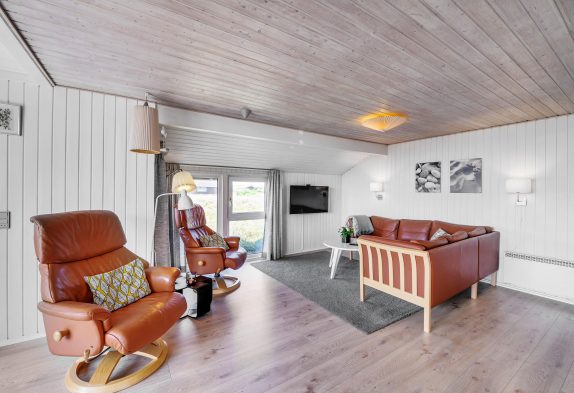 Sommerhusets hjerterum er opholdsstuen, hvor hele familien kan hygge sig og slappe af i hinandens selskab. Imens knitrer brændeovnen i baggrunden og sørger for det sidste touch til den helt rigtige feriestemning.
