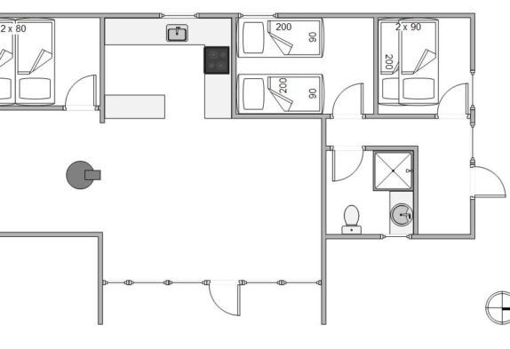 De 5 sovepladser fordeler sig på 3 soveværelser, hvoraf der er en dobbeltseng på det ene. De sidste to soveværelser er indrettet med henholdsvis 1 og 2 enkeltsenge.