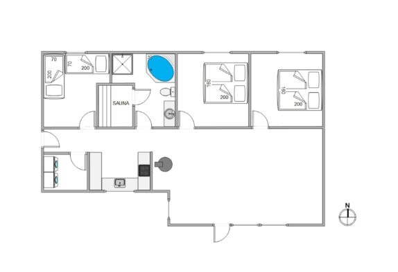 Sommerhuset har et badeværelse med indbygget gulvvarme. Her finder I også både sauna og spabad, som er en kæmpe bonus ved sommerhuset. Begge bliver stensikkert et hit, når I vil lade jeres batterier op. Så læn jer tilbage og nyd varmen og ikke mindst jeres ferie. Her er der velvære for krop og sjæl. Sommerhuset har desuden en energivenlig varmepumpe, som sørger for hurtig og effektiv opvarmning af feriehuset.