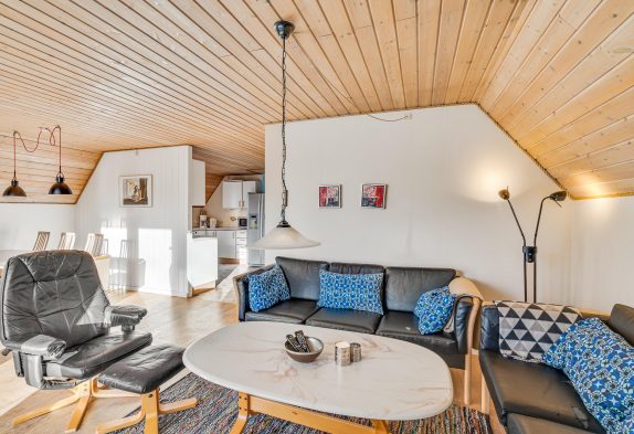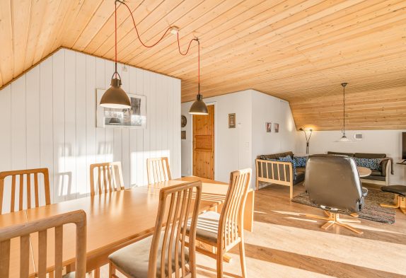 Huset er i 2 etager, og det er altså på 1. salen I finder de 3 soverum, som giver en god nattesøvn for alle gæster. Når mørket falder og I skal samles, kan I synke ned i lædermøblerne i stuen, hvor I kan hygge jer i hinanden selskab foran brændeovnen.