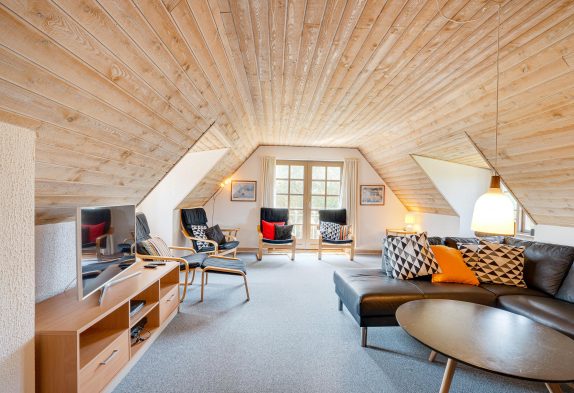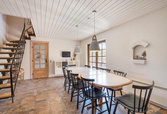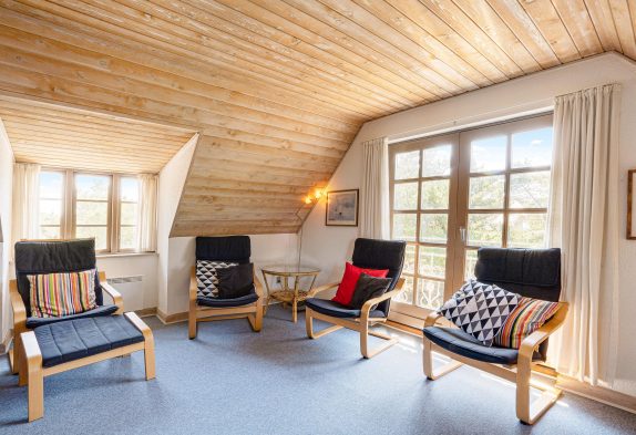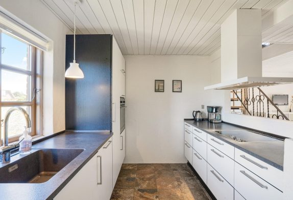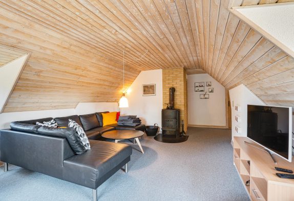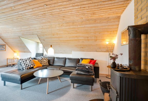Sommerhuset er indrettet i 2 plan, og både i stueetagen og på førstesalen er der lagt op til mange hyggelige feriestunder. I stueetagen kan I samles i køkkenet til madlavning og omkring spisebordet til skønne måltider. Her sørger brændeovnen for at fuldende den hyggelige feriestemning. På førstesalen er der en opholdsstue, hvor I kan sætte jer til rette i sofaen til en god film.