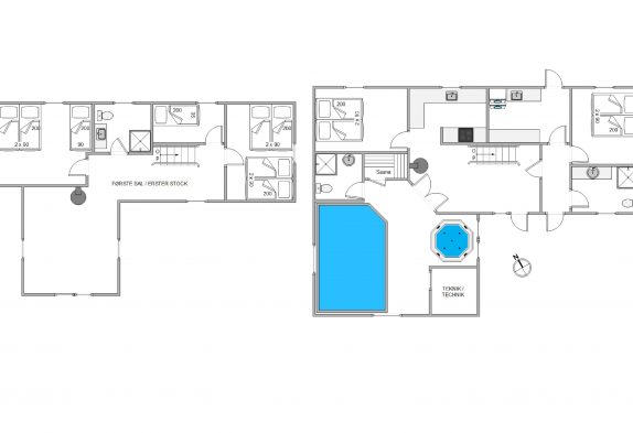Højdepunktet i sommerhuset på Horns Rev 20 er uden tvivl poolrummet. Her er der både noget for dem, der vil være aktive, og for dem, der hellere vil slappe af. I den 18 kvadratmeter store pool kan vandhundene give den gas i timevis med mange sjove vandlege.