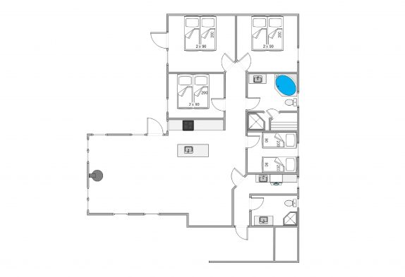 Feriehuset der blev bygget i 2008 og renoveret i 2014, spreder sig over 131m2 og byder jer velkommen med en lys og rummelig atmosfære. De 4 soverum er indrettet med 3 dobbeltsenge og 2 enkeltsenge, hvilket giver fleksible sovepladser til både familie og venner. I hele huset er der gulvvarme, så I slipper for kolde fødder – selv på vinteraftener.