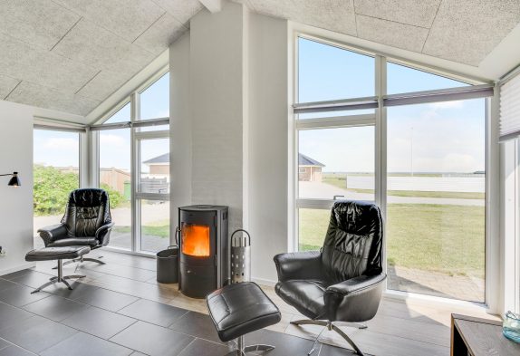 Køkkenet er fuldt udstyret og rummer alt, hvad I behøver – herunder opvaskemaskine og en separat fryser på hele 200 liter, så I nemt kan opbevare både mad og drikke. Sommerhusets naturlige samlingspunkt er den hyggelige stue med brændeovn, som forlænger de danske sommeraftener med varme og hygge stemning.