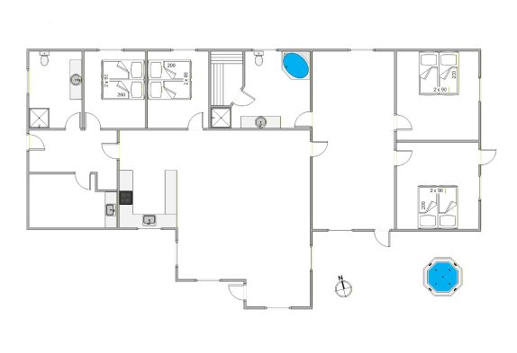 Skal jeres næste ferie både indeholde masser af afslapning og aktivitet? Så er sommerhuset på Søren Gades Mark 30B, der har plads til 8 personer, et oplagt valg. Sommerhuset byder både på en udespa på terrassen samt et spabad og en sauna på et af badeværelserne. Desuden er der et bordtennisbord på terrassen og et aktivitetsrum med billard og dart.