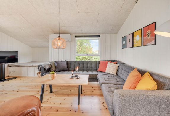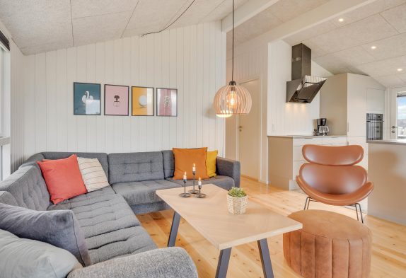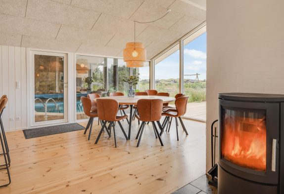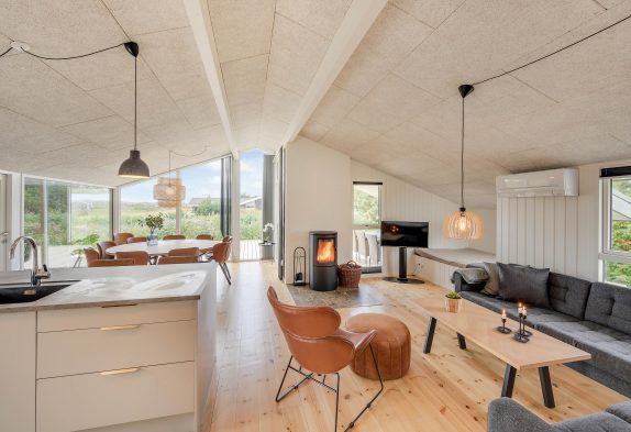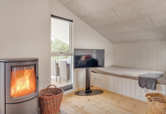 Det skønne sommerhus på Fladsbjergvej 188 råder over en kombineret stor lys, stue og et lækkert køkken alrum. Stuen er moderne indrettet med flotte møbler, brændeovn og fjernsyn. I køkken alrum/stuen er der flere vinduespartier samt direkte udgang til den dejlige og store terrasse. Fra stuen har forældrene ydermere mulighed for at holde øje med børnene, imens de leger i poolen.