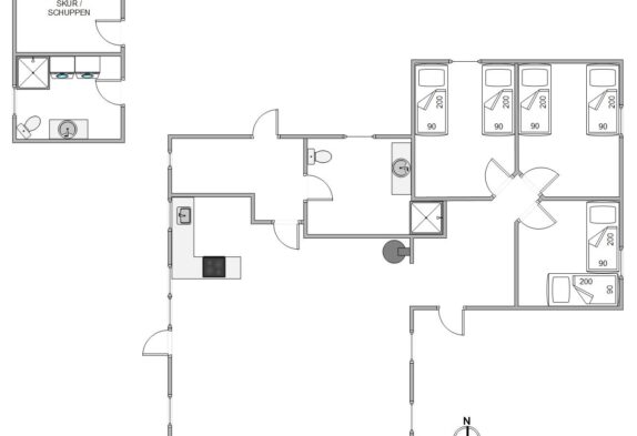 Sommerhuset byder plads til 6 feriegæster, som til aften kan fordele sig på de 3 gode soveværelser – alle indrettet med enkeltsenge.