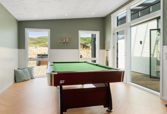 Sommerhuset rummer alt, hvad I skal bruge til at holde en god ferie ved Vesterhavet. I aktivitetsrummet står billardbordet klar til en spændende turnering, mens den store træterrasse har en udebruser, så fødderne kan skylles af for sand efter en tur på stranden. Efterfølgende kan I hoppe en tur i den boblende udespa, mens I nyder den friske havluft og et køligt glas vin.