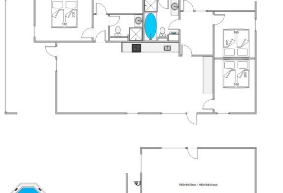 ElPå Bjerregårdsvej 470 ligger dette skønne aktivitetshus med plads til 8 personer. Sommerhuset er bygget i 2021 og er særdeles lyst og indbydende med en moderne indretning. Aktivitetsrummet byder på billard, mens I på den store træterrasse finder både udebruser og udespa. Der er 2 badeværelser i feriehuset, hvoraf der er en sauna på det ene.