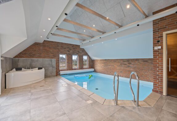 Et af sommerhusets helt store highlights er den 20m2 store pool med direkte adgang til sauna og spa. Her er der rigtigt lagt op til wellness og luksusfornemmelse på ferien. Her kan de mindste hygge sig i poolen, mens de voksne får ladet batterierne op.