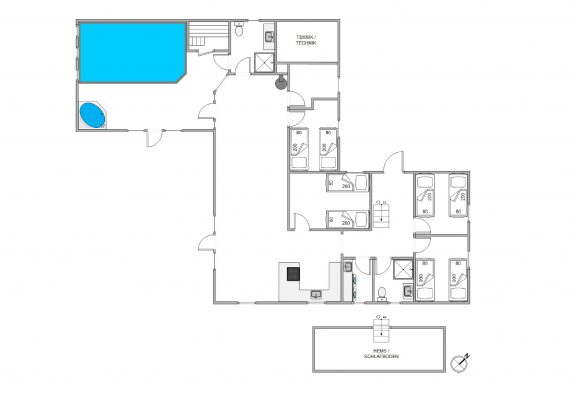 Sommerhuset har både pool, sauna og spa og er et meget energivenligt hus, hvor der er luft til vand varmepumpe tilkoblet hele huset. Sommerhuset er blevet gennemrenoveret over de seneste år, og der er indlagt termostatstyret vandbåren gulvvarme i hele huset – samt i pool området. I pool området er der desuden genvex-anlæg, hvilket giver et rigtigt fint indeklima. Ligeledes er der energivenlig belysning i hele sommerhuset i form af LED belysning, hvilket gør feriehuset billigt i drift. På køligere dage kan I også bruge brændeovnen som varmekilde eller blot hygge med en god bog i sofaen. Sommerhuset har også indlagt hurtigt fiber bredbånd, og I kan også konkurrere i, hvem der er bedst til bordfodbold.