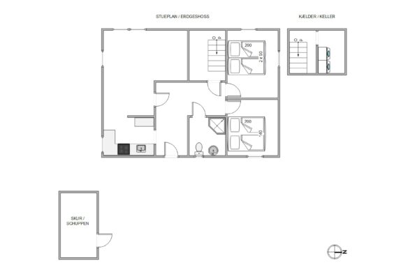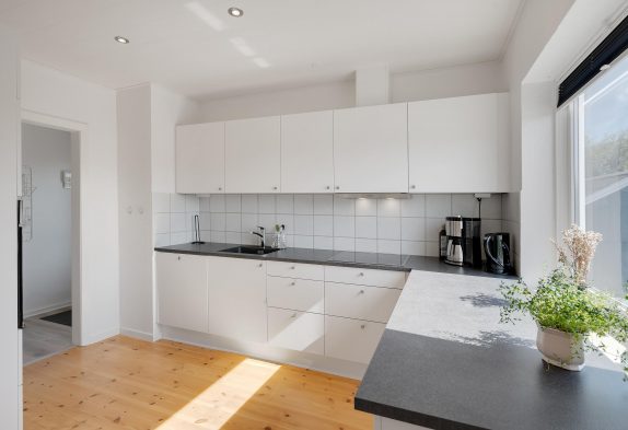 Opvaskemaskinen hjælper med at klare de praktiske gøremål, og der findes også både vaskemaskine og tørretumbler i kælderen. Feriehuset har 2 soverum, hvoraf det ene har en dobbeltseng (2 x 90 x 200), og det andet soverum har en 3/4 seng. Sommerhuset har et badeværelse med nyere klinker og håndklædetørrer.
