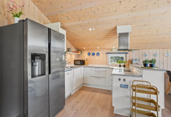 Sommerhusets hjerte, som også vil være jeres samlingspunkt på ferien, er alrummet. Her er der også en brændeovn, der skruer op for varmen og den hyggelige stemning. Udover brændeovnen er der også en energivenlig varmepumpe i sommerhuset, der sørger for gode temperaturer og et godt indeklima.