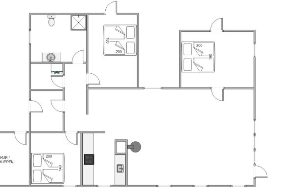 Sommerhusets 6 sovepladser er fordelt på 3 gode soveværelser, hvoraf de 2 er indrettet med dobbeltsenge på 180×200 og soveværelse nummer 3 med en doppeltseng på 140 x 200.