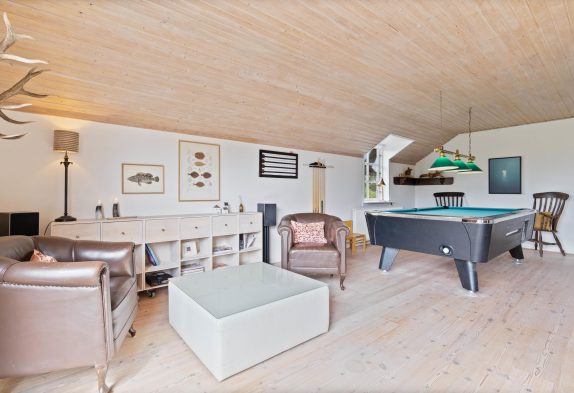 Charmerende og stemningsfyldt indretning med billard, bordfodbold og badekar
