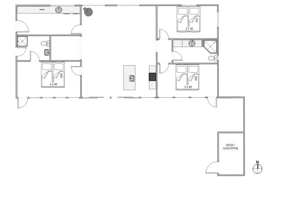 Sommerhuset, der ligger på Nøddehaven 2 i Jegum Ferieland, og når I træder ind i feriehuset, vil I straks opleve den moderne indretning. Det 117 kvadratmeter store sommerhus er indrettet med bryggers, alrum, 2 badeværelser og 3 soveværelser.