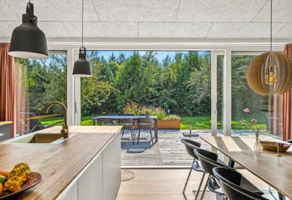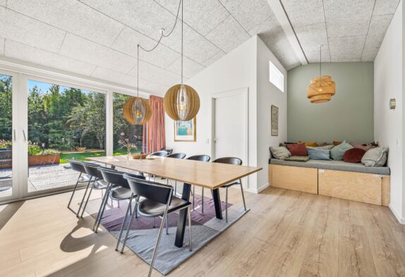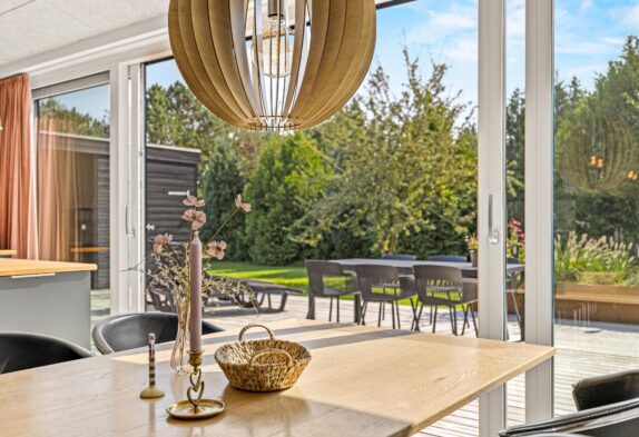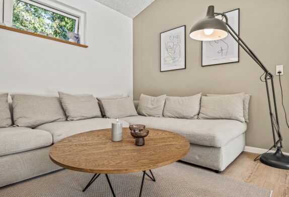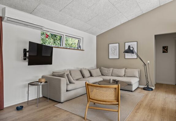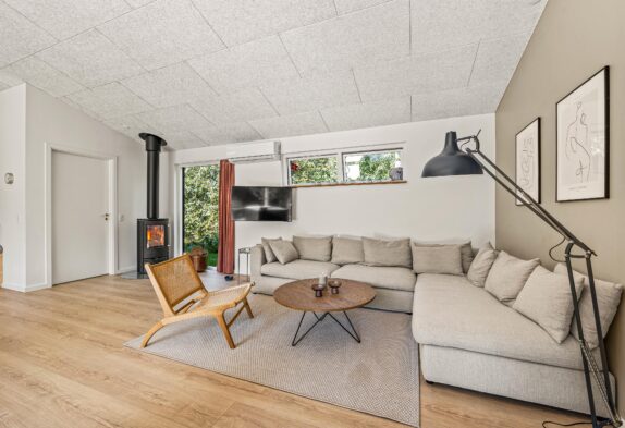Både på badeværelserne, i soveværelserne og i stuen kan I få glæde af gulvvarme, så I helt slipper for at fryse jeres fødder på ferien. Desuden har sommerhuset en energivenlig varmepumpe.