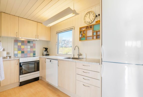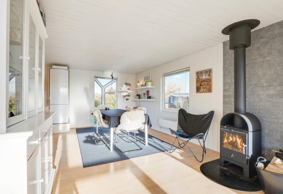Foruden brændeovnen er der også en varmepumpe i sommerhuset, som på energivenlig vis sørger for, at I altid har et godt indeklima med gode temperaturer. Desuden er der en opvaskemaskine i køkkenet, der sørger for opvasken efter madlavningen.