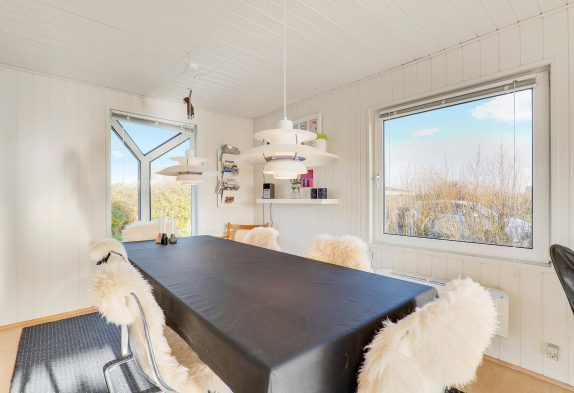 Sommerhuset på Solvej 38 danner rammen om jeres næste ferie, og der er garanti for, at det bliver en hyggelig en af slagsen. I sommerhuset er der nemlig en lys og hyggelig indretning, der sammen med det skønne lysindfald skaber en helt fantastisk ferieatmosfære.