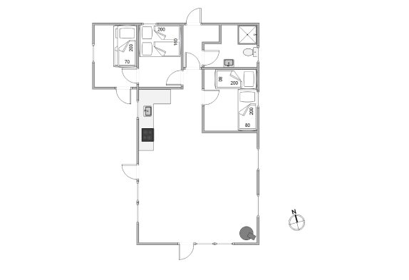 De seks sovepladser er fordelt på 3 soveværelser, hvor et værelse er med en dobbeltseng, et andet med enkeltmandssenge og det tredje med en etageseng. Sommerhuset er derfor ideelt til en familie med yngre børn. Desuden har sommerhuset et badeværelse med gulvvarme, så I kan undgå at få kolde fødder. Yderligere er der en varmepumpe, som sikrer en behagelig temperatur til energivenlige priser.