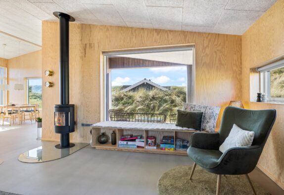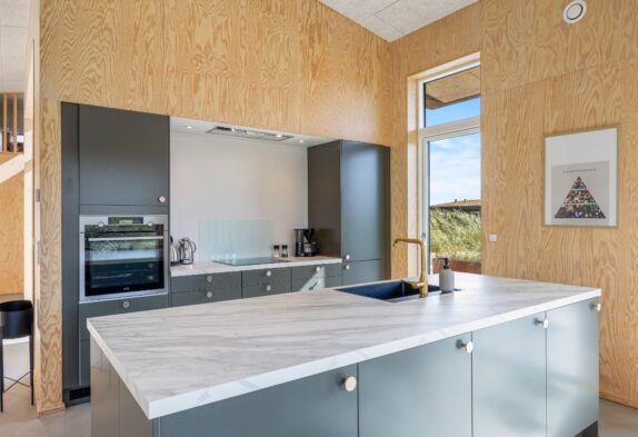 Feriehuset er indrettet med et stort, lyst og venligt køkken med åben forbindelse til stuen. Her er plads til at hele familien kan samles over madlavningen. I køkkenet finder I alle moderne redskaber, som gør ferien lidt nemmere. Her er opvaskemaskine, køleskab samt en fryser på 45 L. Desuden er der induktions komfur med ovn.