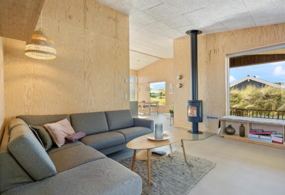 Stuen indbyder til hyggeligt samvær foran tv´et eller tænd for brændeovnen og nyd ildens knitren, måske med et glas vin i hånden. I hele køkken/stue er der behagelig gulvvarme. I dette smagfuldt indrettede sommerhus, er der lækre træ laminat gulve overalt samt lynhurtigt fibernet.