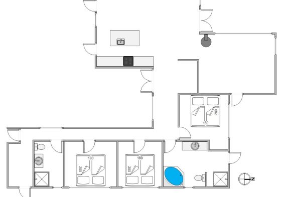 I sommerhuset finder I de to lækre badeværelser. I begge badeværelser er der skøn gulvvarme og bruseniche. I det store badeværelse er spaen, som helt sikkert er et stort hit hos alle i familien. Nyd den efter en dejlig dag på stranden eller en kold efterårsaften.