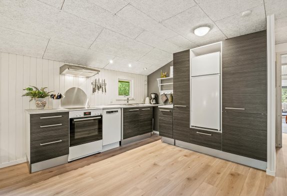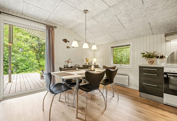 Udover brændeovnen er sommerhuset også udstyret med energivenlig varmepumpe, så I altid kan have et godt indeklima i feriehuset. Derudover er der også gode praktiske faciliteter i form af opvaskemaskine og vaskemaskine, der hjælper jer med praktisk husarbejde på ferien.