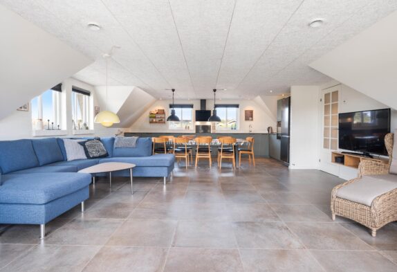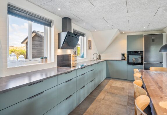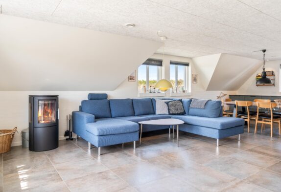Sommerhusets alrum er det store samlingspunkt for hele ferieflokken. Her ligger køkken, stue og spiseplads i åben forbindelse, så I kan tilbringe masser af tid sammen og nyde hinandens selskab under madlavningen i køkkenet og afslapningen i stuen. Brændeovnen i stuen sørger for at sætte prikken over i’et for den hyggelige feriestemning. Derudover findes der Air-hockey i huset.