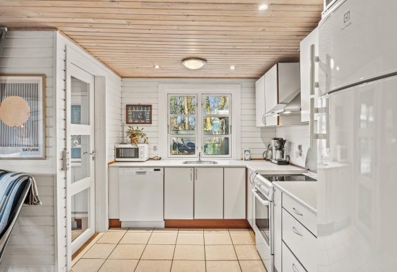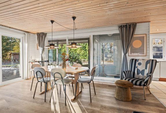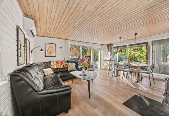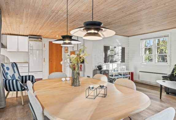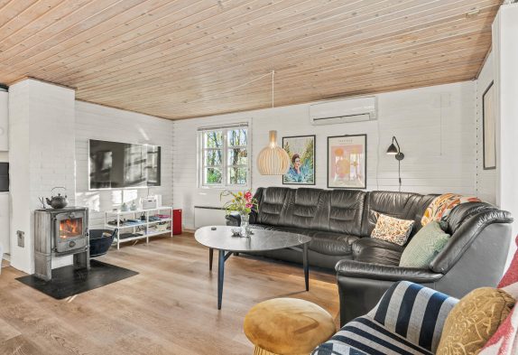 Dette sommerhus er hyggeligt indrettet, og I vil straks føle jer hjemme. Når I træder ind i sommerhuset, møder I det store køkken-alrum, som udover at være samtalevenligt også tilbyder en opvaskemaskine til at klare selv det største rod. Hele familien kan samles i stuen, til filmaftener eller timevis af spilhygge i hinandens selskab. Her kan I tænde op for brændeovnen og nyde knitren.