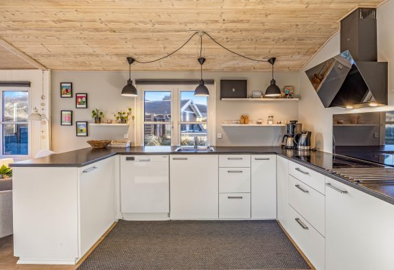 Sommerhuset er udstyret med gode praktiske faciliteter, der hjælper jer med de praktiske gøremål på ferien. Vaskemaskinen og tørretumbleren hjælper jer med tøjvasken, mens opvaskemaskinen hjælper med opvasken efter madlavningen. For ekstra hygge har i på de koldere feriedage mulighed for at tænde op i den hyggelige brændeovn og mærke varmen brede sig i hele feriehuset.