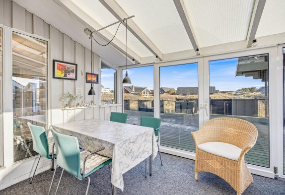 Sommerhuset har en beliggenhed uden lige. Fra sommerhuset på Sletten 35 har I nemlig kun 100 meter til det fantastiske Vesterhav, som kun tager jer få minutter at nå til, når I trænger til en frisk dukkert i de blå bølger eller en skøn gåtur langs vandet.