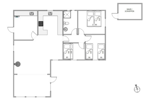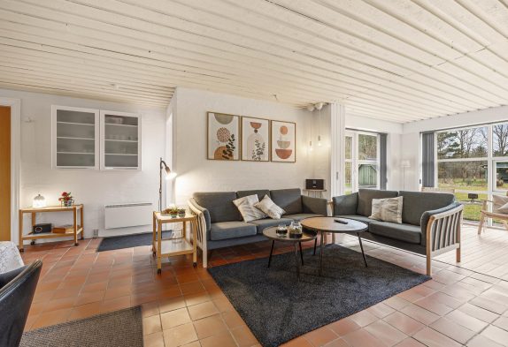 I sommerhuset på Søndervang 29 i Houstrup, der er 100 kvadratmeter stort, finder I 3 soveværelser, der er indrettet med henholdsvis en dobbeltseng, 2 enkeltsenge og en etageseng. Desuden er her også et badeværelse, der er udstyret med gulvvarme, så I slipper for at starte dagen med kolde tæer.