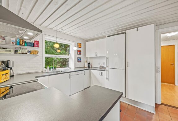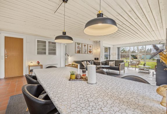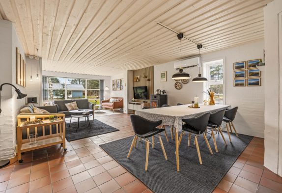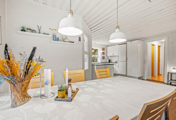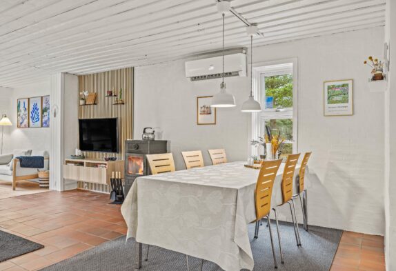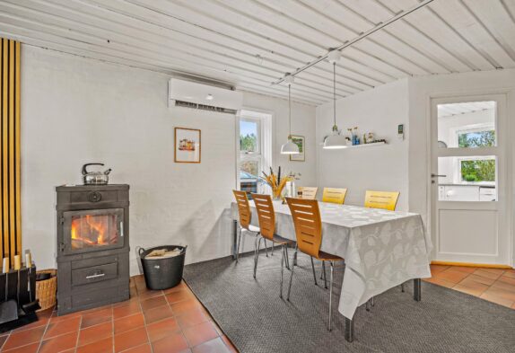 Sommerhuset rummer også et skønt alrum, hvor køkken, stue og spiseplads er forenet. Alrummet udgør det helt store samlingspunkt for jer på ferien, hvor I kan tilbringe masser af tid sammen med blandt andet madlavning, spil og film. I alrummet har I også en brændeovn, der ikke bare sørger for god varme, men den sørger også for at fuldende den hyggelige feriestemning.