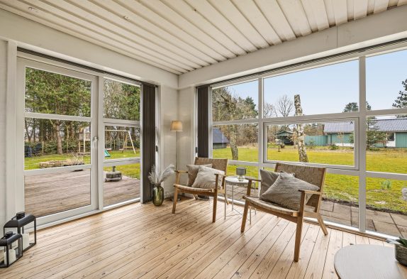 Mens der er gang i legen blandt børnene, kan I andre slappe af på terrassen. Sommerhusets terrasse er åben og delvist afskærmet, og her har I både havemøbler og liggestole, I kan finde jer godt til rette i. Find en god plads i solen, læn jer tilbage og nyd ferien med lyden af fuglefløjt, vinden i træerne og børnenes leg i baggrunden.