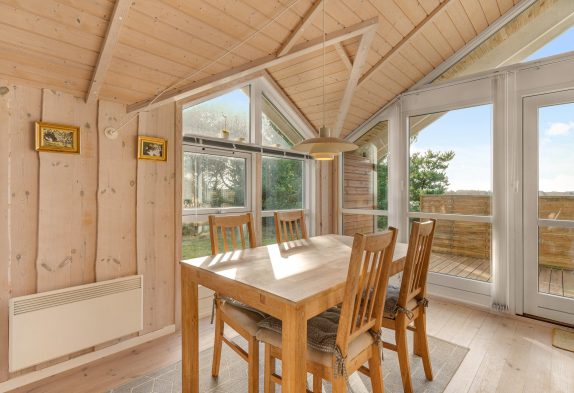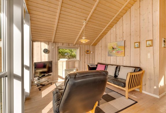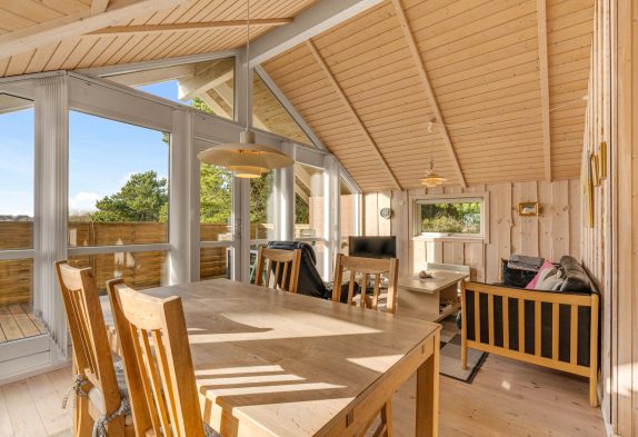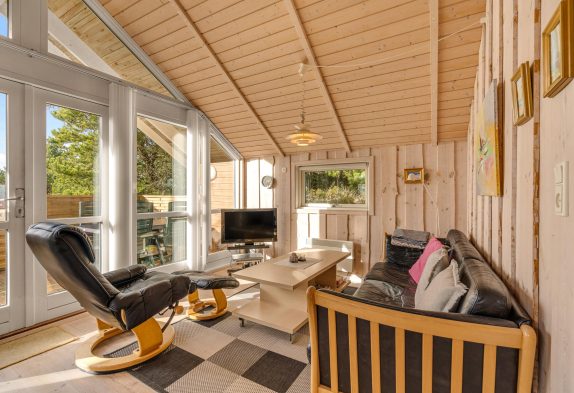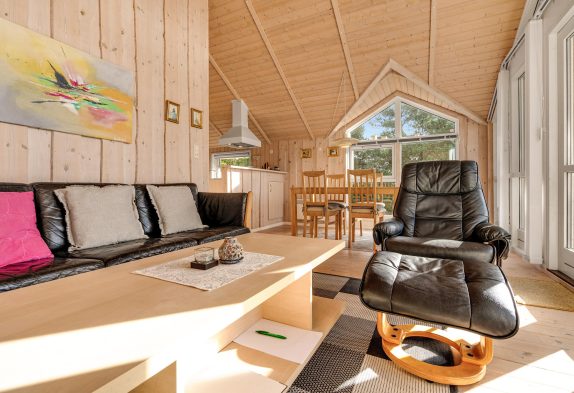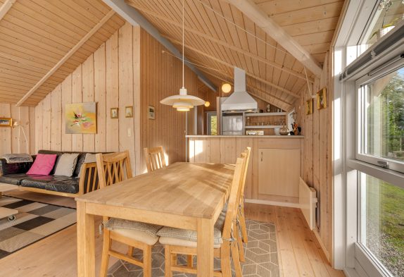 I sommerhuset på Mærsk Vase 1 i Blåvand møder I en lys og hyggelig indretning med trævægge og -lofter. Sammen med det skønne lysindfald i sommerhuset og loft til kip danner det en fantastisk ferieatmosfære for jer at holde jeres kommende ferie i.