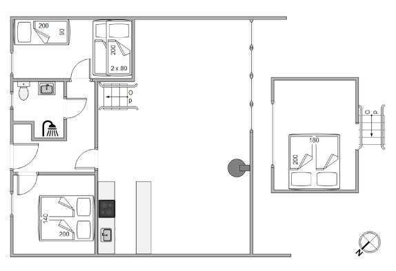 Sommerhuset på Hybenvej 64 er indrettet i 2 plan. På førstesalen finder I et soveværelse, der er indrettet med en dobbeltseng, og hvorfra I kan nyde et kig ud til den omkringliggende natur. De resterende 2 soveværelser, der i alt er indrettet med 1 dobbeltseng, 1 enkeltseng og 1 etageseng, finder I i sommerhusets stueplan. Her finder I også badeværelset, der er udstyret med gulvvarme.
