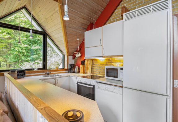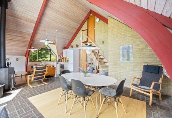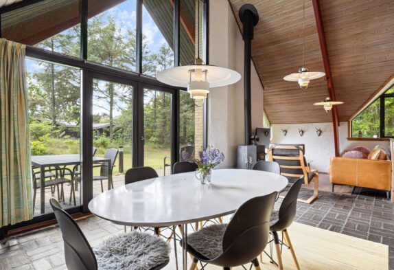 Alrummet er også indrettet med en brændeovn, der med sin knitren og varme sørger for at fuldende den hyggelige feriestemning. Derudover har I en varmepumpe i feriehuset, der sørger for et godt indeklima på energivenlig vis.