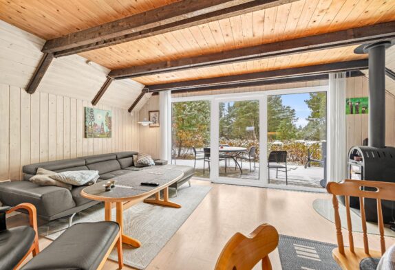 Sommerhuset blev renoveret i 2021, og I kan derfor være sikre på, at der er styr på alle detaljerne. I stuen kan I slappe af, og hele familien kan samles til en god film, som kan streames fra sommerhusets Apple TV. Yderligere har sommerhuset et badeværelse med gulvvarme, og en varmepumpe, som sikrer behagelige temperaturer til lave omkostninger.